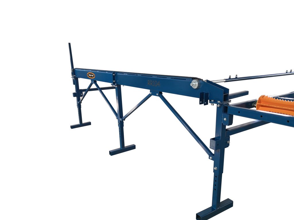 Designed as a powerful alternative to the popular RR102, the RR103 stands out with its reinforced frame, heavy-duty rollers, and an optional RR104 extension. When paired with the RR104, the deck doubles in width, enabling you to process significantly longer logs and reduce time spent on log handling.